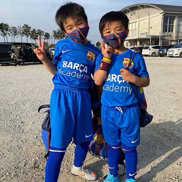 ちなみに今年の春休みは初めてのバルサキャンプに参加した兄弟。バルサ独特の雰囲気で楽しくサッカーをしていました。