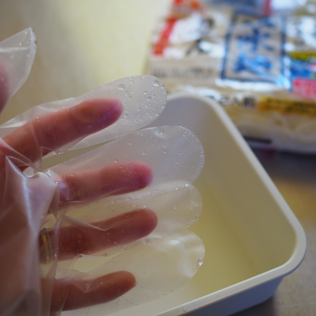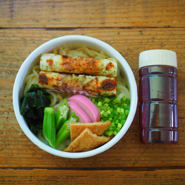 うどんは流水麺を使用します。これ、本当に手軽で便利!毎年夏には必ずお弁当に使用します。少し細めの麺がまた美味しいんです。