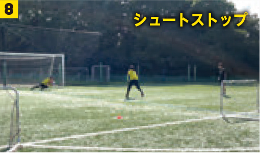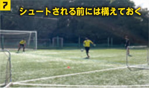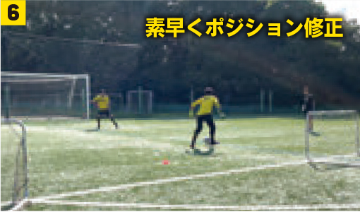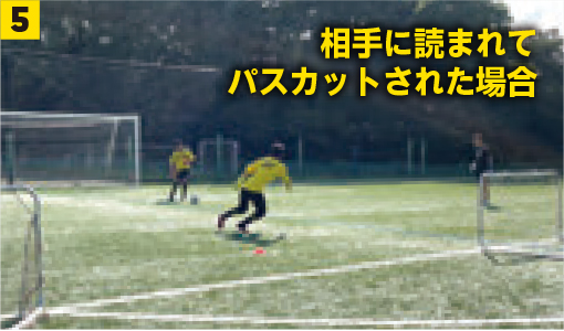 万が一相手にパスカットをされた場合は写真❺~❽の通り。最後までプレーを行う意識も身につけよう。