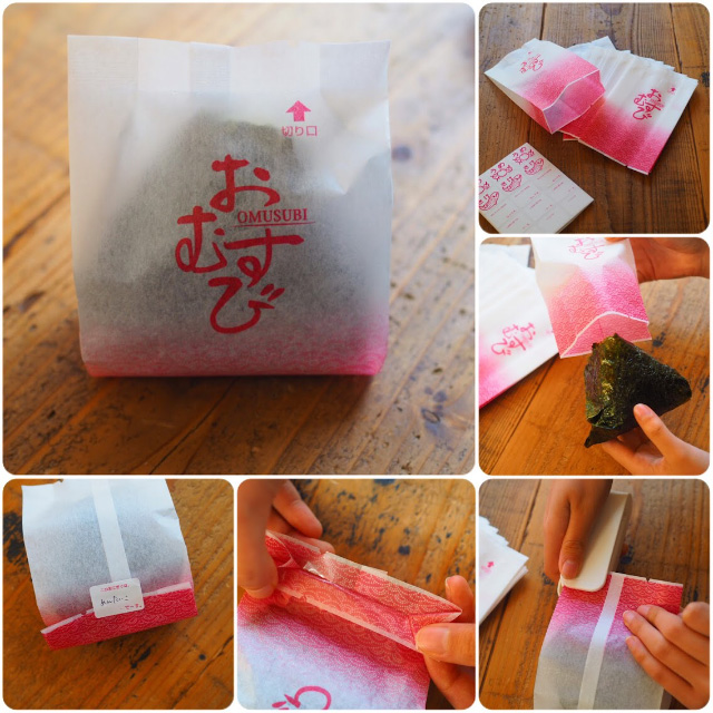 コンビニのおにぎりに慣れてる子ども達におすすめ!100均はもちろん、楽天などでは海苔付きの包みも売っています。海苔屋さんが販売してるので絶対美味しいですよね。
