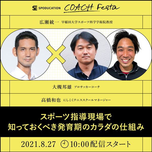 8月27日(金)から31日(火)の5日間、子どもの育成に関わるすべての指導者のためのオンラインセミナー「SPODUCATION COACH FestaSPODUCATION COACH Festa」がSPODUCATIONにて開催されます。