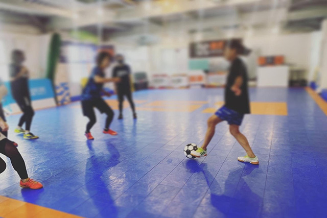 最初は軽くアップから。アップだけで既にちょっと楽しい。その後、足元の練習へ。元フットサル選手のコーチが丁寧に教えてくれます。
