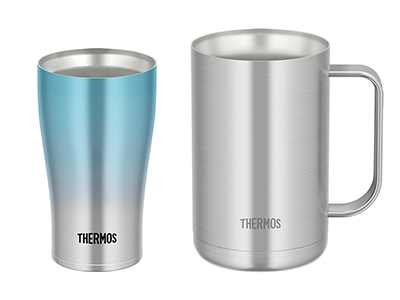 真空断熱構造で冷たさをキープするタンブラーやジョッキ。全国に4店舗あるサーモスの直営店「サーモススタイリングストア」では、タンブラーに名前を入れるサービスも。