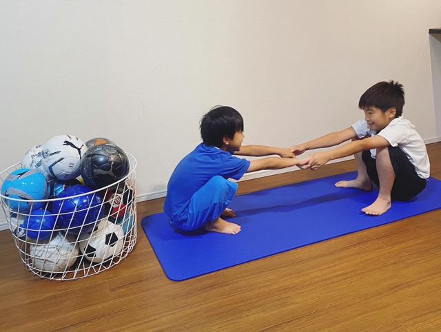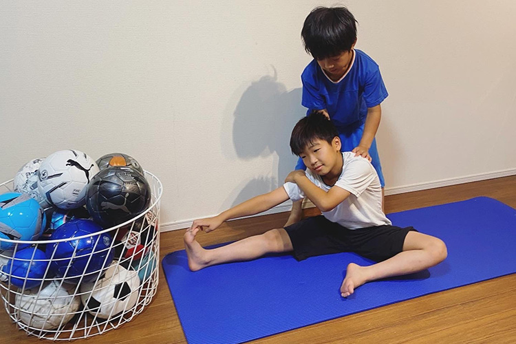 もちろん、子どもたちも毎日サッカーで疲れて帰ってきているので、ストレッチをする時間を取るのが億劫な日もあります。その時はベッドで軽くストレッチしてそのまま寝るという感じで、無理はせず、どんな形でも継続する、ということを子どもたちが自然に意識出来たらいいなと思い続けています。