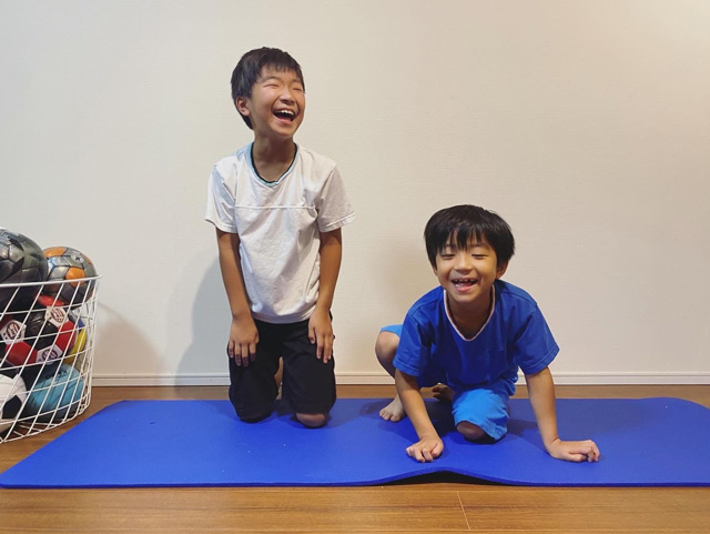 長男ほど身体が柔らかくない次男も、長男がストレッチをしている姿を見て一緒にするようになったら、前よりだいぶ身体が柔らかくなりました。