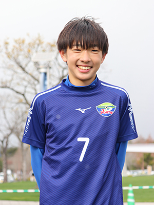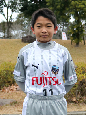 「ストロングポイントはスピードに乗ったドリブルからのクロスやシュートです。個人としては大量得点に関われているし、みんながいいプレーをしていて、フロンターレらしいサッカーができていると思います。それは攻撃的で奪われたら奪い返すという、当たり前のことができるサッカー。全国大会でもこれを貫いていきたいです。FWの全(天海)選手と僕の二人が必ずゴールを決められるように、お互いにチャンスをつくることを心がけています。ワンツーなどの連携はできていると思うけど、少しタイミングのズレがあるので修正してきたいです。憧れの選手は三笘薫選手で、自分で突破してフィニッシュを決められることです。(両親へ向け)いつも支えてくれてありがとうございます!」