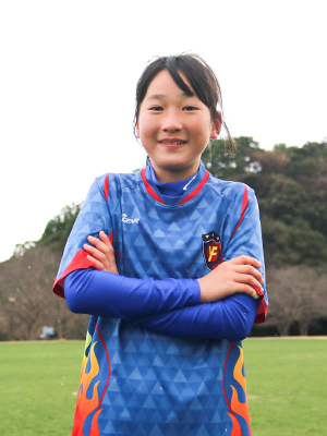 「後方から試合を組み立てることを意識しています。常に周りをみて相手の嫌なところにボールを入れられるように心がけています。全国でも守備では互角に戦えていると思うのですが、やはり相手のプレッシャーが強くてドリブルでうまく運べなかったり、技術が足りないところは痛感しています。監督、コーチからはサッカーの技術的な部分はもちろんですが、何より人間として大事なことが何かを教わることができたと思います。いつも支えてくれる両親にはただ『いつもありがとう』と伝えたいです」