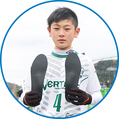 「自分の足の裏にフィットしてすごく使いやすかったです。試合でも攻撃を仕掛けたり、パスをスムーズにできました。今まで使用していたインソールは踏ん張りがきかなかったけど、サッカー専用のザムストのインソールでは思い切り踏み込めるので強いシュートが打てました」