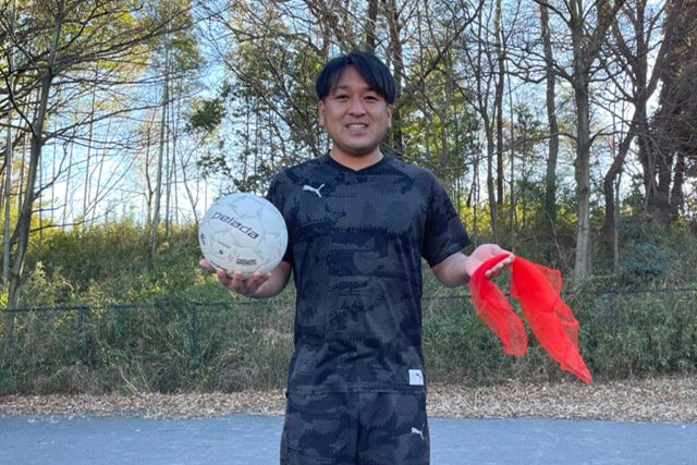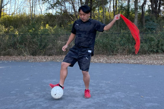 今回紹介する「ライキネ パス&コン」は、手でタオルを振りながら、パスの受け渡しをするトレーニングです。手と足が違う動きをするので混乱するかもしれませんが、自分の思った通りに身体を動かすスキルが向上します。失敗しても止まらずに行ってくださいね。