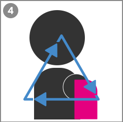 ❹右手を挙げて指示を出した場合は、逆の方の足を使う(出し手は左手を挙げてフェイントするのも◎)