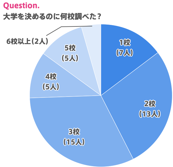 続いて、大学を決めるのに何校調べたかも聞いてみました。