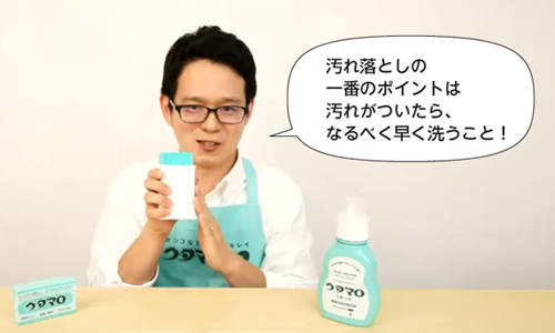 トークライブでは、ウタマロを使ったお洗濯講座も。ウタマロマスターの反保さんが教えてくれたウタマロ石けん、ウタマロリキッドの正しい使い方をピックアップ!