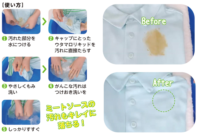 ウタマロリキッドは、中性、無けい光なので、色柄や生地の風合いを守りながら、ガンコな汚れをしっかり落とすことができます。