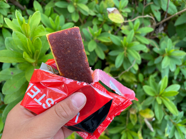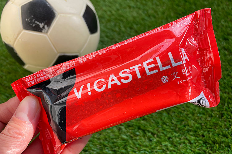 1つ目は文明堂の「V!カステラ」です。通常のカステラよりもしっとりとしていて、スティック状で食べやすく改良されています。