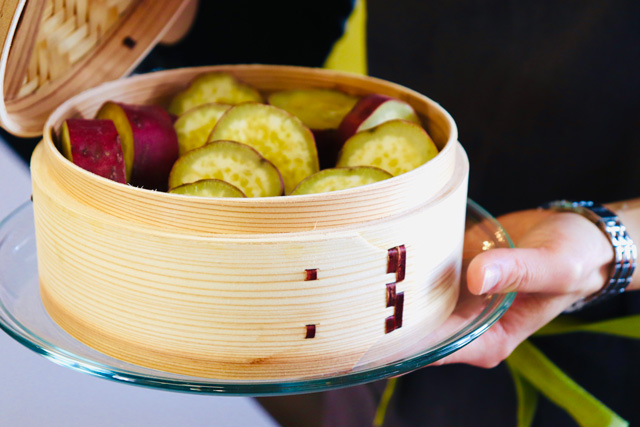 - 蒸気の立った蒸し器にかけ10分くらい蒸す。竹串をさしてなにも付いてこなかったら完成です。