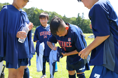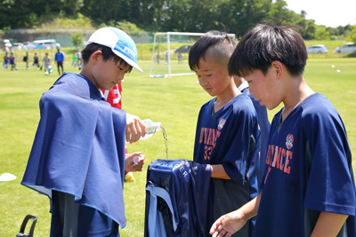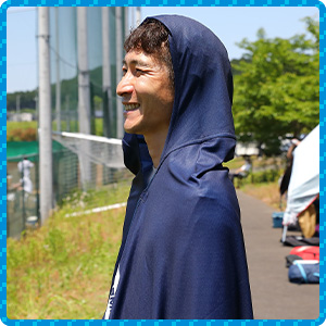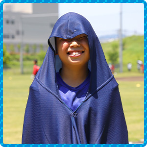 夏の暑熱対策として、頭から水をかけたり、足を水で濡らしたりするのですが、結局、その部分が熱くなってしまうので難しい部分もあるんです。その点「COOL SHADER」は着るだけで身体全体を冷やすことができるので、暑熱対策に有効活用できると思いました。また、アップの時にも着用でき、軽い素材なので、子どもたちも動きやすそうでした。休憩の時に「COOL SHADER」を着て身体を冷やしてしっかり休めたので、試合での動きもよかったように思います。
