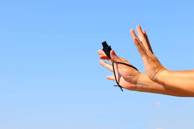 笛はその状況に応じて長短・強弱を使い分けることで、主審のメッセージを選手に伝えるコミュニケーションにもなります。例えば、スローインの位置をリードするために短く「ピッ」と吹いて選手をリードすることもできますし、相手への無茶なファウルに対しては「ビー」と強く大きく吹いて危険なプレーであることを気づかせることもできます。一方で、常に同じ強さで「ビー、ビー」と吹いていると、選手の感情を害することにも繋がりますから、注意が必要です。