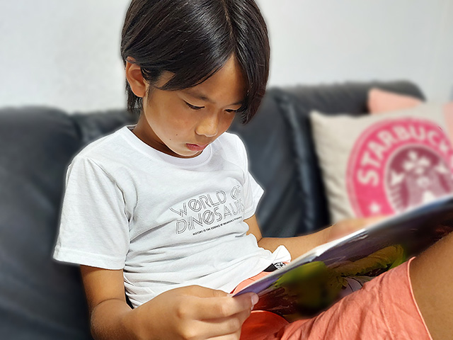 ガイドブックを読み込む次男。