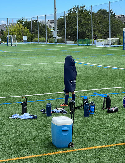 次の試合はベンチで休憩することにし、お友達からZAMSTの冷感ポンチョ「クールシェイダー」を借りて(これがとても素晴らしく後日我が家も購入しました)、コーチにもたくさん水を掛けてもらいました。少し休憩したので大丈夫かなと思っていたのですが、休憩後の試合でも無言のままであまり走れず……。その時に自分でも辛かったのか、コーチに自ら帰りますと伝え、明日から合宿だし無理せずにと言っていただき、この日は急いで帰宅することにしました。