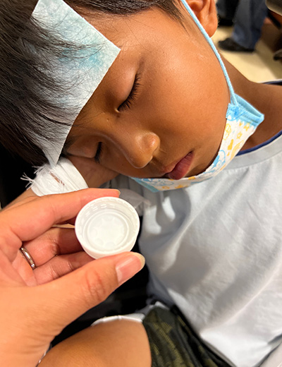 救急外来に着いてすぐに点滴を受けることになりました(コロナは陰性でした)。この時、本人はもうぐったりで話すことも飲むことも出来ない状態。腕に巻かれた包帯が痛々しく、最初の違和感の時点で帰るように伝えたら良かったと後悔しました。