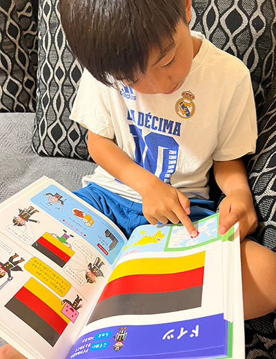 それから2年以上経った先日。サッカーショップに貼ってあったレアル・マドリードの選手のポスターを見た2年生の次男が、ほとんどの選手の名前を言えていたのです!! 5年生の長男と一緒に家にある海外の選手名鑑を常に読んでいたのですが、選手のポジション、プレースタイル、チームのフォーメーションから国旗まで詳しく説明出来るように!
