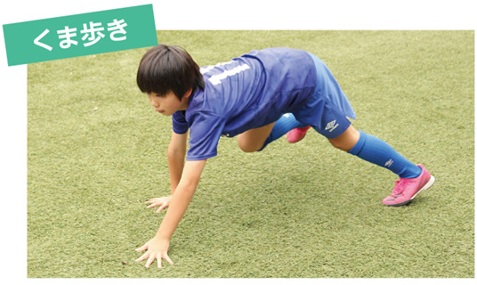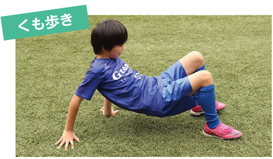 腕の筋肉や腹筋などを鍛えることができる簡単な運動が「くま歩き」と「くも歩き」。「くま歩き」は、地面に手足をついて四つんばいの姿勢で、「くも歩き」は仰向けになり、手と足で身体を支え、腰を上げて前後左右に歩きましょう。