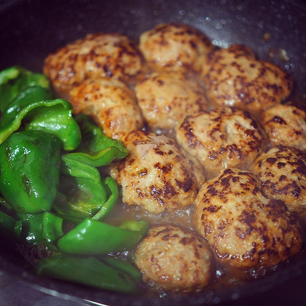 蓋をしないでじっくりと焼くことでジューシーで柔らかく仕上がります。我が家では忙しい夜にはピーマンを肉詰めにしないで一緒に添えて焼くことも。その際は、反対に返したタイミングでピーマンを加えて下さい。ちなみに、ピーマンに含まれるビタミンCは加熱による損傷が少ないので、肉詰めもオススメです。