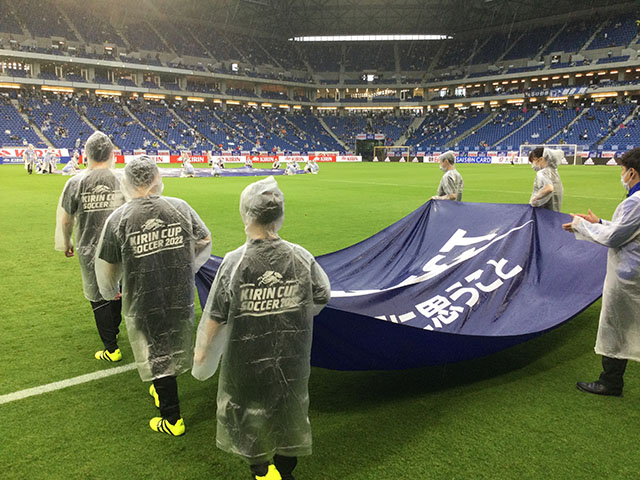 「日本代表の試合前にフラッグをピッチに運ぶ『リスペクトフラッグベアラー』を弊社の社員が務めさせていただきました。練習段階から立ち会ったのですが、激しさの中にもフェアプレーを称える想いが込められた“リスペクトフラッグ”をピッチに運び、代表選手を迎え入れる姿にすごく感動したのを覚えています」