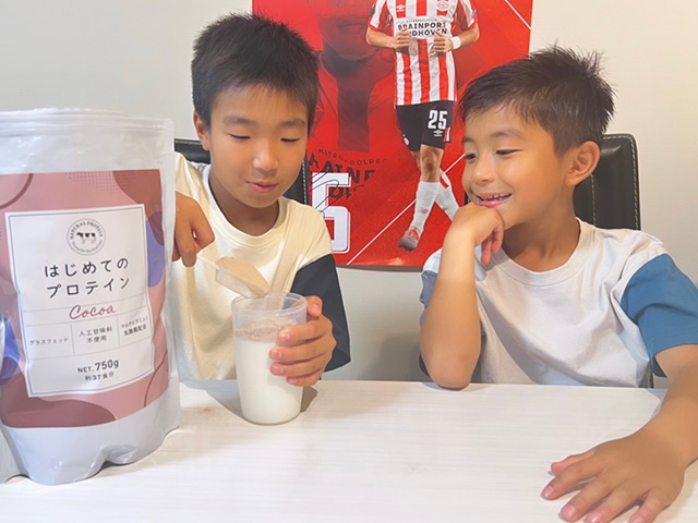 安全性にこだわっていることももちろん嬉しいポイントですが、個人的には、これまで進んでプロテインを飲むことがなかった子ども達が「美味しい!もっと飲みたい!」と言ってくれたことが驚きでした。5年生の長男は、今では朝起きると自らシェイカーで作って飲むほどに。ちなみに、次男は長男に作ってもらったものを喜んで飲む係です(笑)。