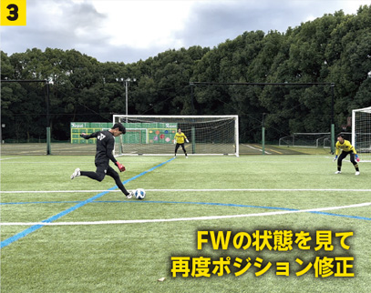 3FWのボールの置き所を見て再度ポジションを修正。