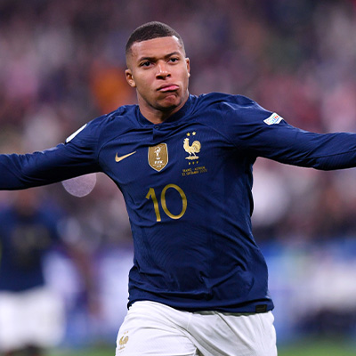 前回大会で一気にスターダムにのし上がったストライカーは、4年間でさらなる飛躍を遂げ、23歳の現在では選手の市場価値で世界トップに君臨する。一人だけ倍速再生しているような異次元のスピードと決定力で史上三カ国目(イタリア[1934-1938]・ブラジル[1958-1962])となるW杯の連覇を狙う。