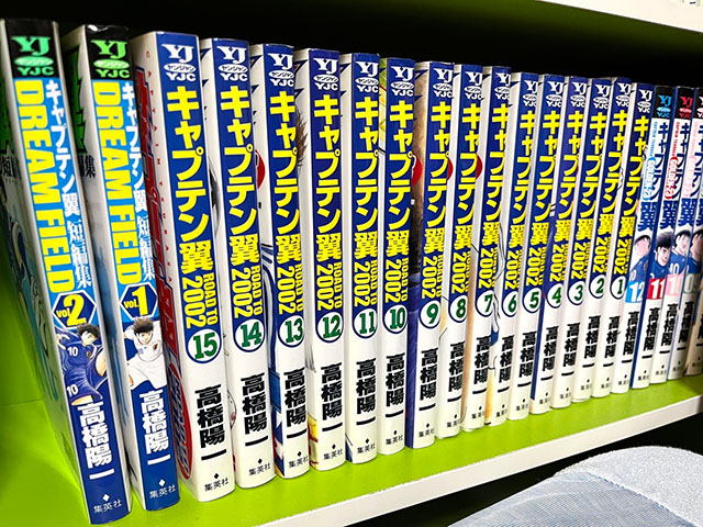 息子は、「キャプテン翼」をはじめ「アオアシ」「イナズマイレブン」「ビーブルー」 など、サッカーの漫画やアニメが大好きです。ベッドの横にはせっせっと集めた漫画がずらっと並んでいます。