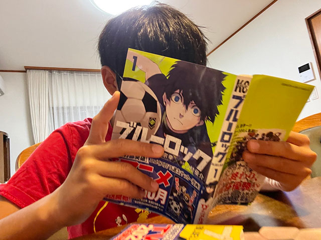 そんな息子ですが、先日の試合で勝利したり、夏休みに頑張って描いたポスターが賞をもらったり、陸上競技大会のリレーで1位になるなど……立て続けにお祝い事が続き、そのご褒美におねだりしてきたのが「ブルーロック全21巻」でした。私も気になっていた漫画だったので、届いた箱を開ける時は息子と一緒に大喜び(笑)。そこから親子でブルーロックにはまっています。