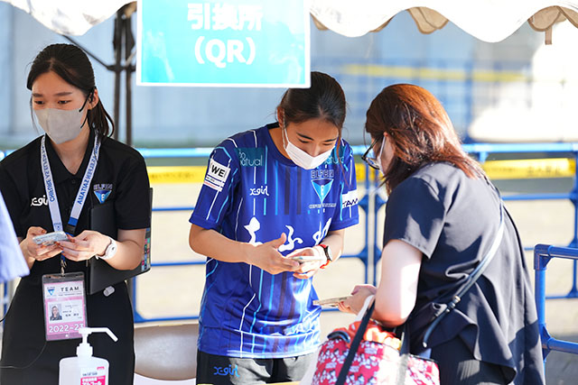 ちふれASエルフェン埼玉ではグッズ担当としてWEリーグサプライヤーのX-girl(エックスガール)さんと打ち合わせを重ね、何を商品化するのか、どういう目的でお客さんに届けるのか、日々情報を集積しています。
