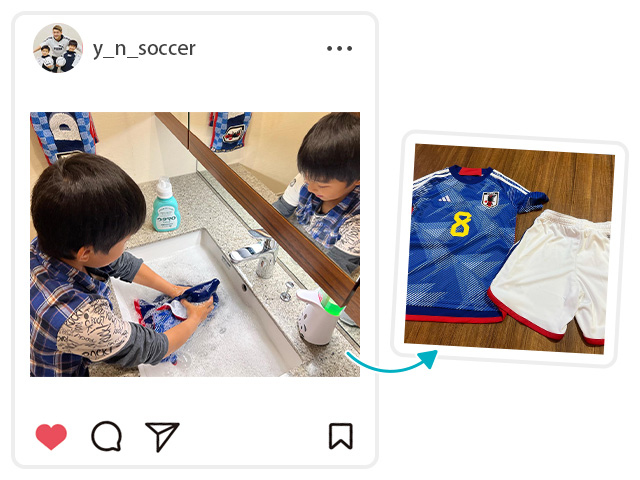 soccer MAMAのインスタグラムでは、カタールW杯を盛り上げるべく「ウタマロ×サカママ 泥汚れ落としCUP」投稿キャンペーンを行いました。サッカーの試合や練習で泥んこになったBefore写真と、ウタマロ石けんやウタマロリキッドでキレイになったAfter写真が投稿されると反響が続々。ここではその一部をご紹介。ウタマロのすごさ、今一度チェックして!