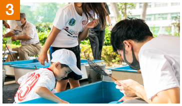 「江戸川区は金魚の名産地で日本三大産地(奈良県の大和郡山、愛知県の弥富)の一つとされてきました。しかし50年続いた金魚祭りはコロナ禍で3年連続中止、養魚場は最盛期に20件あったのが今では2件になってしまいました。金魚のふるさとでもある江戸川区で触れ合いの機会をつくりたい想いで、東京都淡水魚養殖漁業組共同組合の協力を得られることになりましたが、クラブ側からは生き物を扱うことに対して幾度も指摘を受けました。そこでメダカすくいの催しを行なっていたJリーグクラブを現地調査し、持ち帰った金魚の飼い方とまとめた同組合の冊子を作成して、懸念点を一つずつ潰して実現にこぎ着けました。鑑賞用の高級金魚、備品の用意から運搬まで協力してくれた堀口養魚場さんには感謝しています」