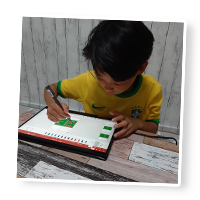手書きでは漢字でつまずいたり、間違えたりと集中力が途切れやすいものの、PC サッカーノートなら楽しみながら集中して取り組める。