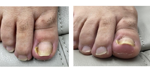あまり巻いているように見えないのに、いつも足に痛みがあるという方は「陥入爪(かんにゅうそう)」になっている可能性があります。陥入爪(かんにゅうそう)とは、巻き爪よりも痛みが強く、横の皮膚に爪が刺さった状態になるため、腫れたり膿んでしまったりして時には出血してしまうこともあります。