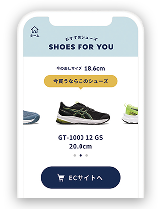 子どもの成長にあった、適切なシューズ選びに活用できるのが「ASICS STEPNOTE」(下記参照)。アシックススポーツ工学研究所の蓄積データをもとに子どもの足の成長を予測し、適切なサイズのシューズを適切なタイミングで知らせてくれるツールなのです。