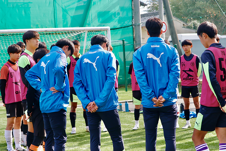 ジュニア世代の指導を経て、2021年に監督に就任した梶村卓監督が練習を見守る。