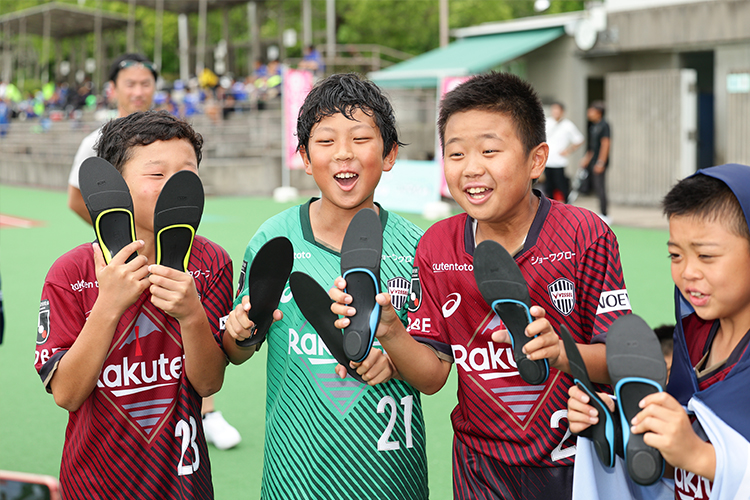 足型測定の後、自分の足裏のかたちにあったインソールを入れて試合に臨んだ選手たちからは「足にフィットする」「走りやすい」「痛みがなかった」などの声が多数上がっていました!