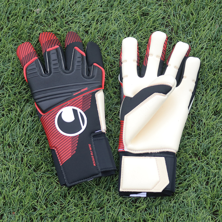 uhlsport(ウールシュポルト)のGKクラブ「パワーライン アブソルートグリップ リフレックス」を着用。指全体をタイトフィットに設計したNEWフィンガーカットのアブソルートグリップパームモデルだ。強めパンチング時に威力を発揮するリバウンドゾーン、手のひらのパームを親指内側から甲側へ巻き込み縫製し、指股のグリップ力をアップするなど最新のテクノロジーを搭載。GKが求めるニーズに対応したプロダクトだ。
