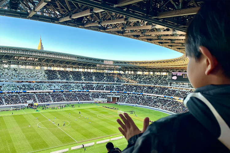満員に近い観客がいる国立競技場の雰囲気は素晴らしく、選手たちの一つひとつのプレイに会場全体が湧き立っていました。その雰囲気が少年のココロをグッと掴んだのだと思います。サッカーがいかに人々を魅了するスポーツなのかということを、改めて感じました。