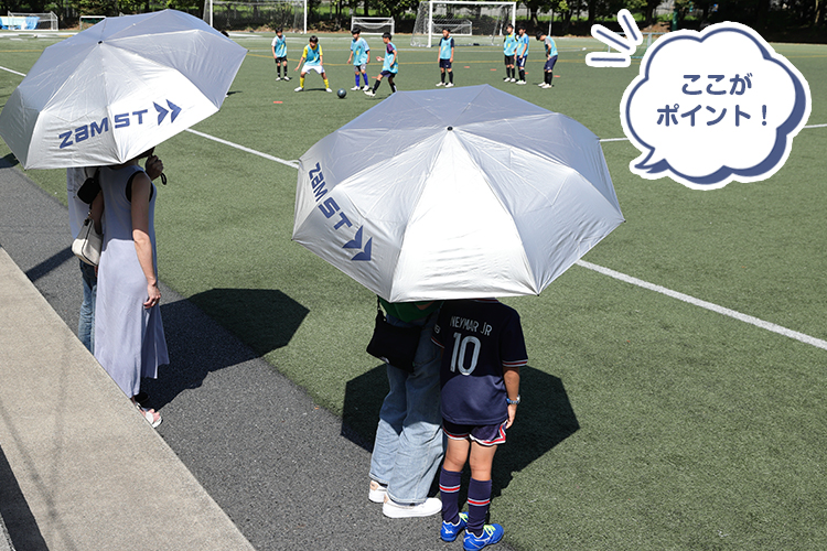 日陰のない炎天下の会場でお子さんのスポーツを見守るママパパたちにとって、熱や光を遮ってくれる日傘は重宝する存在なのではないでしょうか? そこでご紹介したいのが、ZAMSTから新発売された「WIDE SUNSHADER」。夫婦や親子でもすっぽりと入るBIGサイズで、スポーツ観戦から日常生活まで、危険な暑さや日差し対策をして楽しくスポーツ観戦をしましょう!