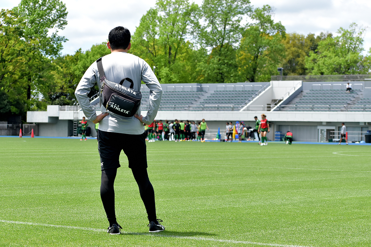 練習をモニタリングしている金内さん。細かい仕草や日々のコミュニケーションをよく観察し、選手の些細な変化を見逃さないよう意識している。
