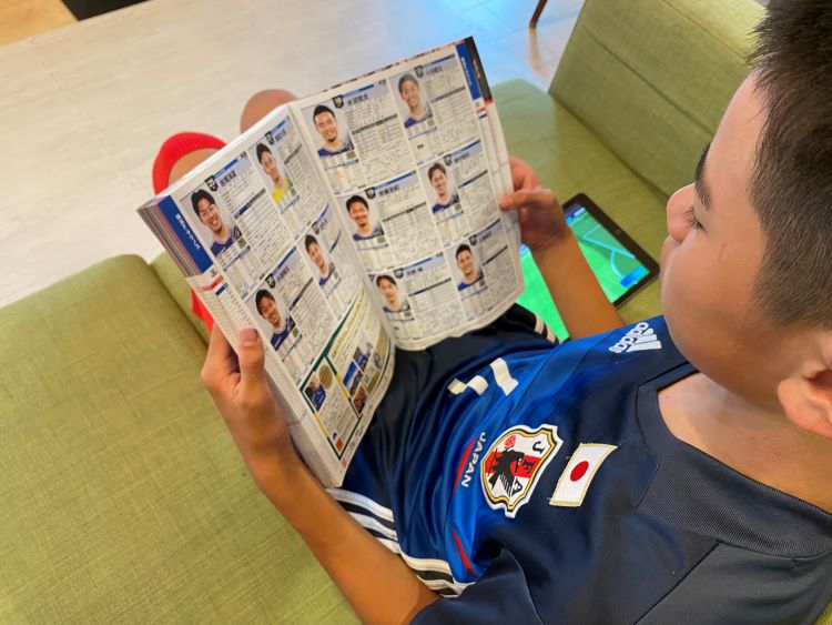 学校の読書タイムに持って行こうとするくらい選手名鑑を見るのが大好きな息子。練習や試合に向かう移動中に突然選手のクイズが始まるので、私も選手の名前を必死になって覚えました。その甲斐あって、移動中の車は夫・息子・私の3人でいつも盛り上がっています!