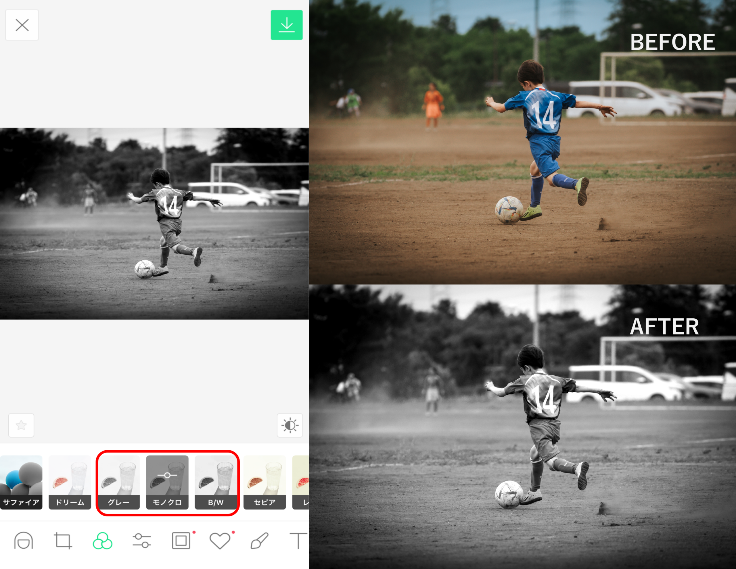 編集の引き出しを増やしサッカー写真にバリエーションを♪
