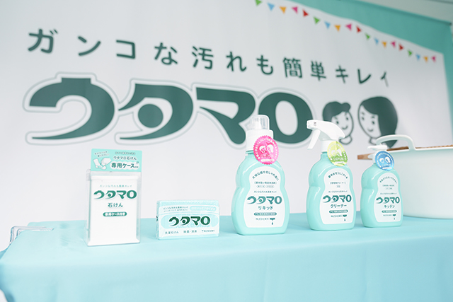 ウタマロスタッフが、お洗濯のコツを踏まえながらウタマロ石けんの使い方を実演。泥だらけの靴下が見る見るきれいに落ちる様子に選手たちからは「すごい!」「まっ白!」といった驚きの声が上がりました。