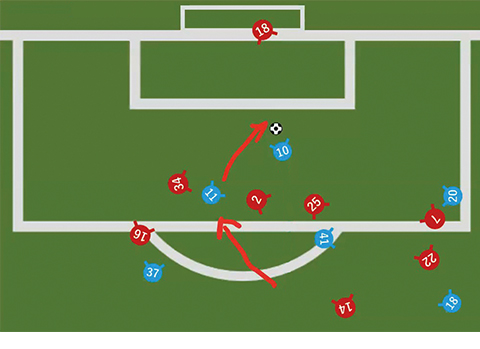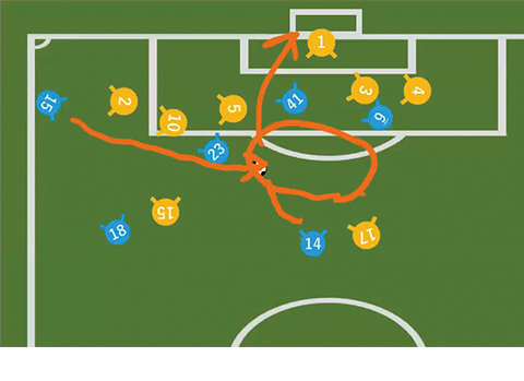 空いたスペースで縦パスを受けてからのゴール