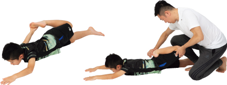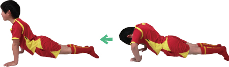 子どもは骨が成長段階にあり、骨端軟骨部(骨幹と骨端の間にある軟骨の層)が弱いので、長時間、負荷をかけすぎるトレーニングや間違ったトレーニングをしてしまうと、スポーツ障害をおこす原因になってしまいます。例えば、その場でジャンプを繰り返すトレーニング。高回数行うとオスグッド病を引き起こす原因になってしまいます。また、2人1組で足を持ってもらい、反動を使って行う腹筋運動は腰椎の負担にも。脚頚椎や各関節、じん帯に負担がかかるようなストレッチも避けることです。